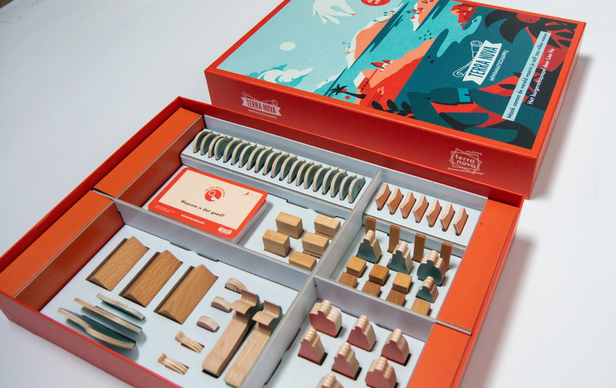 Met Terra Nova Minimaatschappij ontwerp je samen de wereld waar je zelf in zou willen wonen. Met dit dialoogspel staat jouw team aan het roer van een nieuwe samenleving, terwijl een verhaallijn je moreel kompas op de proef stelt. Het houten spelmateriaal maakt grote vraagstukken klein en bespreekbaar. Zo kan iedereen meedoen, zonder moeilijke woorden of voorkennis. Hoe ziet jouw wereld eruit?