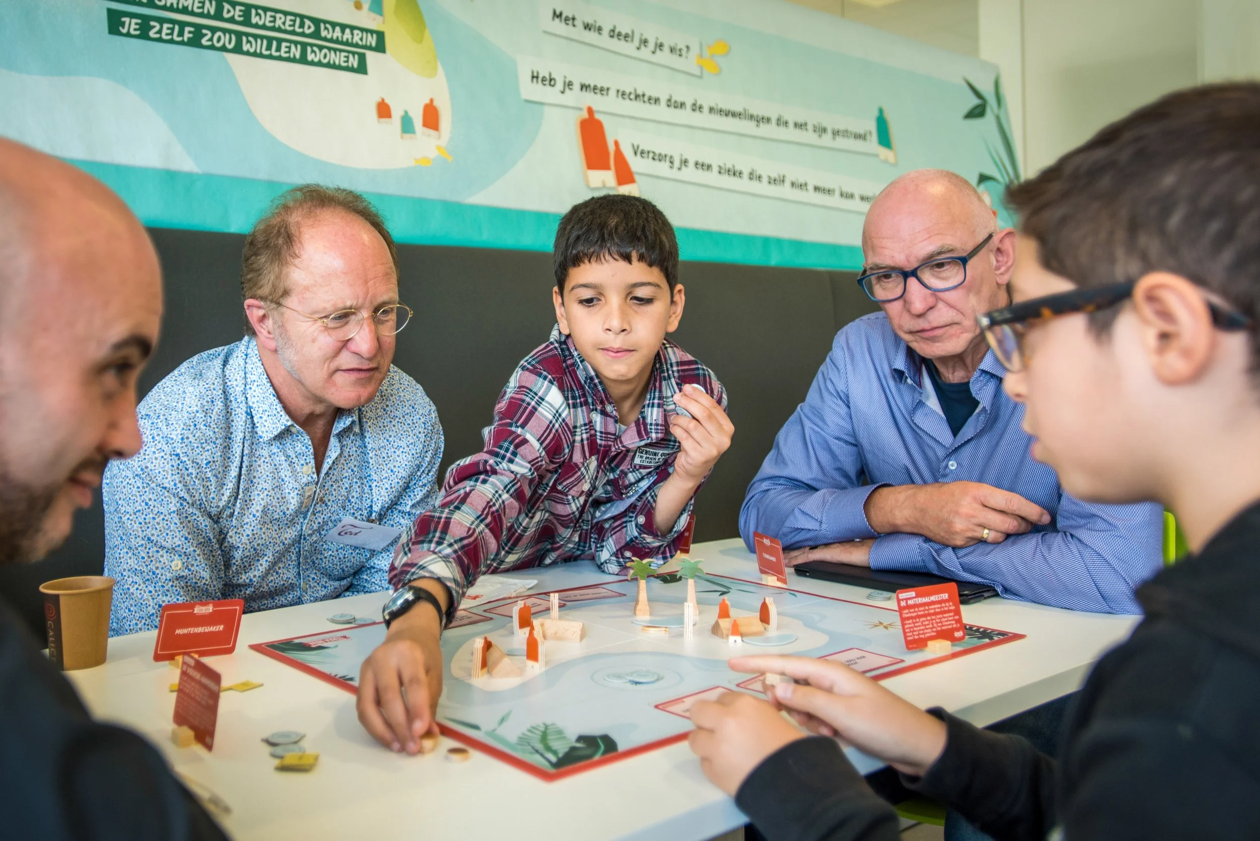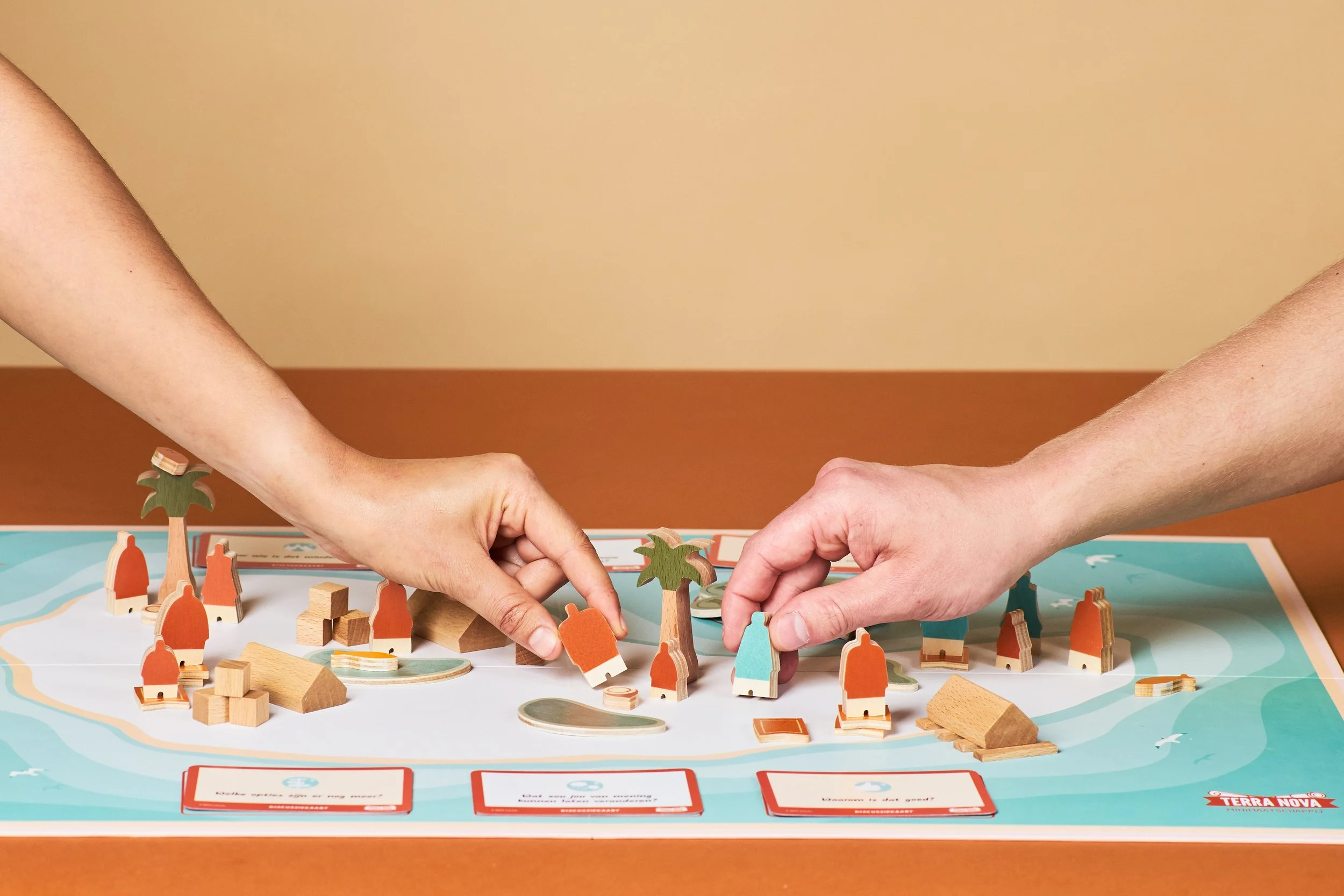 Met dit burgerschapsspel maak je de grote uitdagingen van de samenleving bespreekbaar. Een verhaallijn vol dilemma’s stelt je moreel kompas op de proef. Spelers verkennen hun eigen standpunt en die van een ander, stellen elkaar kritische vragen en zien hun waarden in een nieuw licht. Het houten spelmateriaal maakt complexe vraagstukken tastbaar en toegankelijk. Zo kan iedereen meedoen.